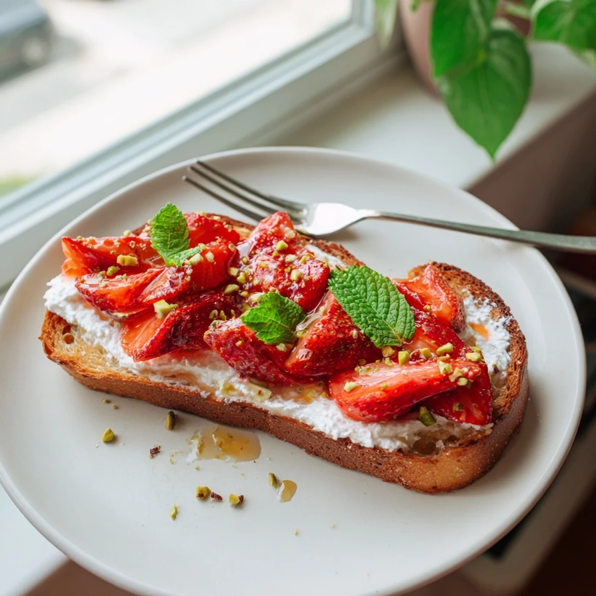 I have learned the hard way that warm toast meets room temperature ricotta meets hot strawberries is the ideal temperature progression. If the ricotta is too cold, it numbs the flavors, and if the berries have cooled completely, they lose that jammy quality. Try to time it so everything comes together within the same 10 minute window.